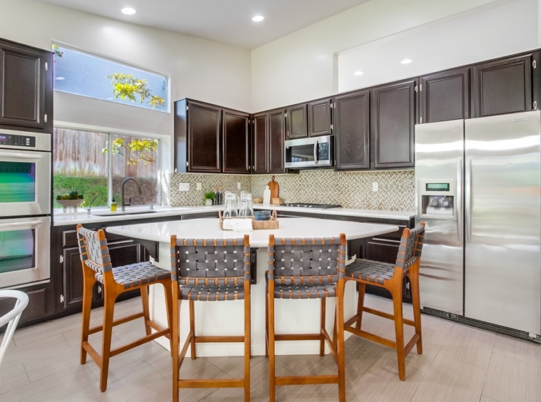 or move right in and feel at home. The updated kitchen is a chef’s dream, featuring stainless steel appliances, including double built-in ovens, a new microwave,