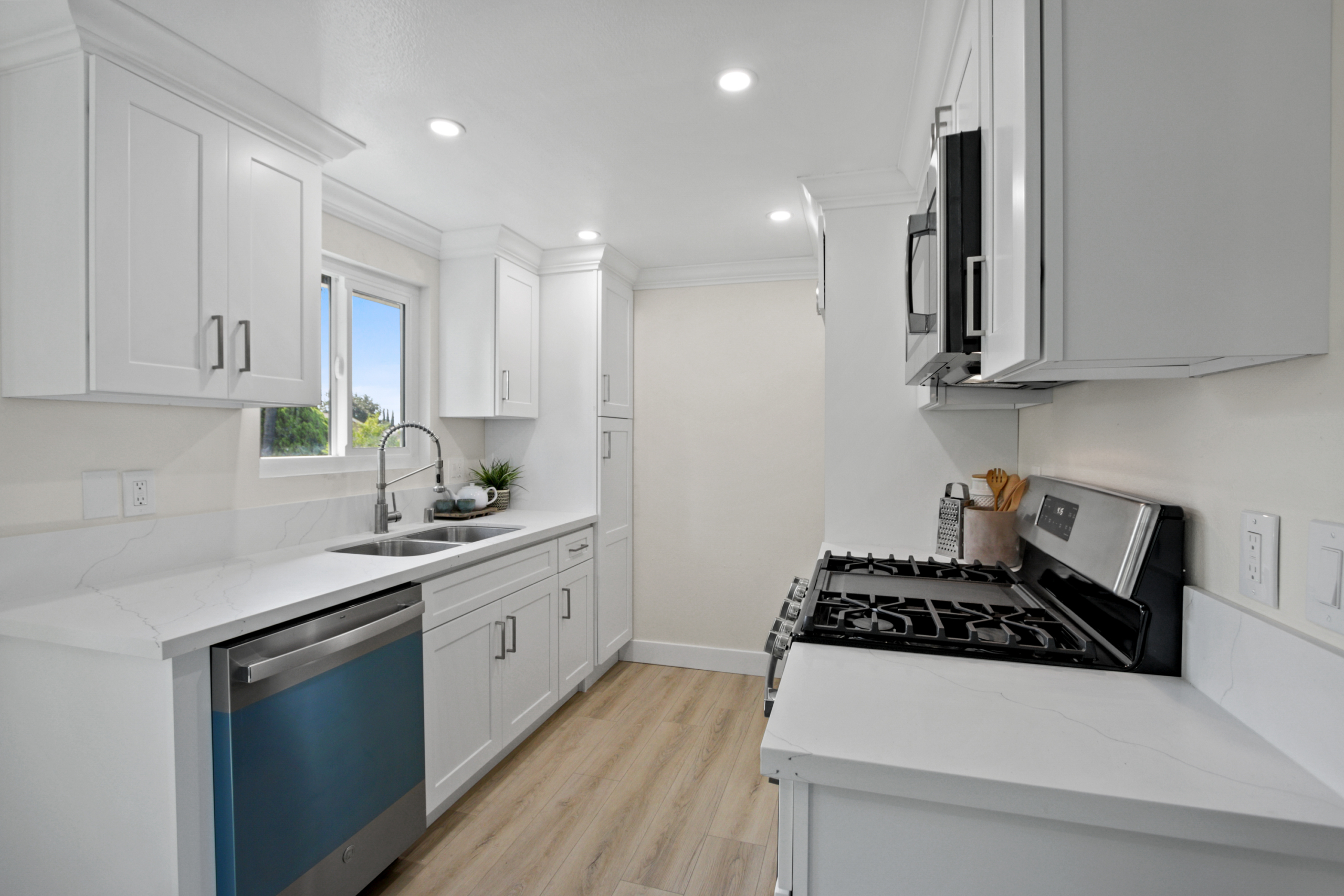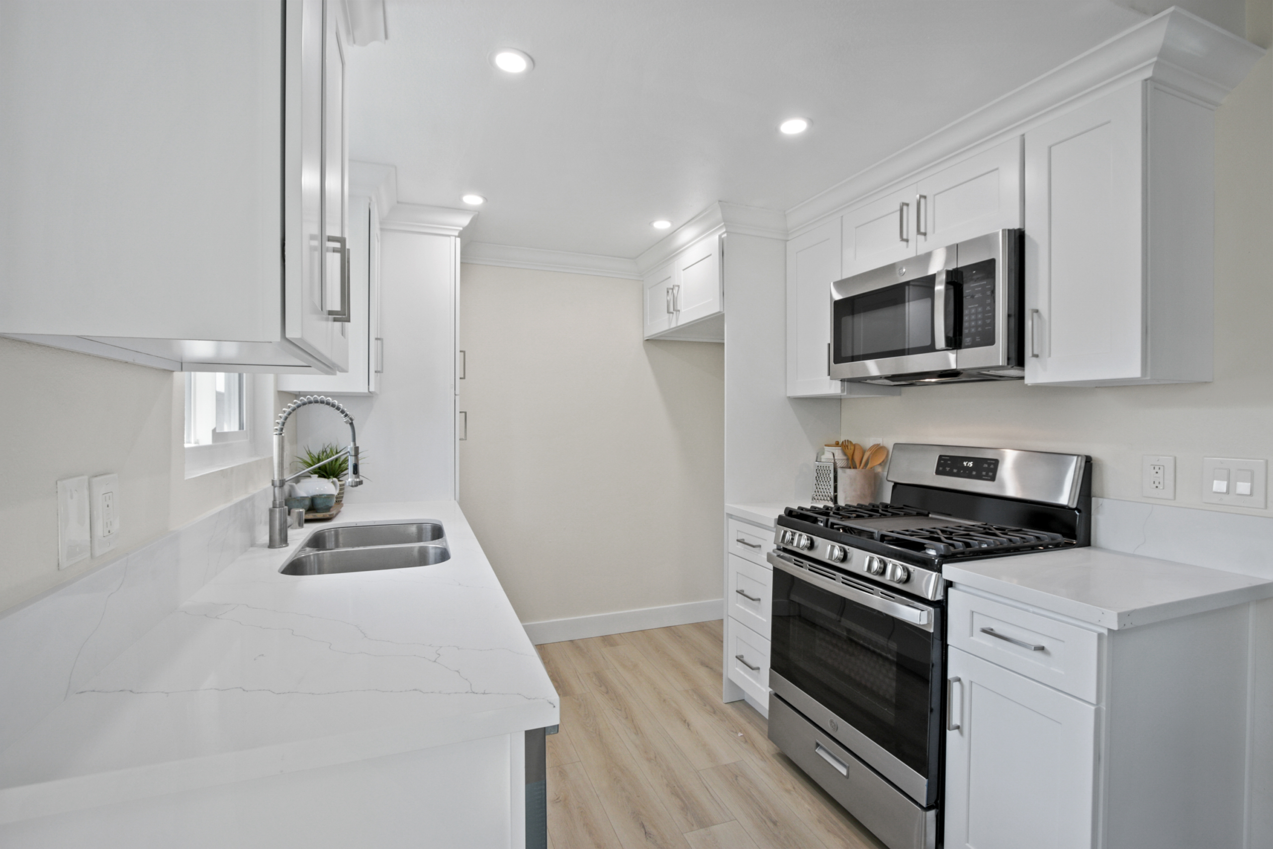 Fully remodeled condo situated in the highly desirable North Pomona. Enjoy all the modern touches featuring upgraded kitchen with new countertops, cabinets, appliances & backsplash, newly installed water resistant laminate flooring, new dual pane windows, tastefully remodeled bathroom with designer tile, new vanity and new tub, master bedroom with walk-in closet and a fresh coat of paint throughout. This condo is fully equipped with an attached garage and laundry hookups. Close to Claremont Colleges, parks, freeways, shopping and dining. Don’t miss out on this opportunity for high quality Southern CA living at an affordable price.